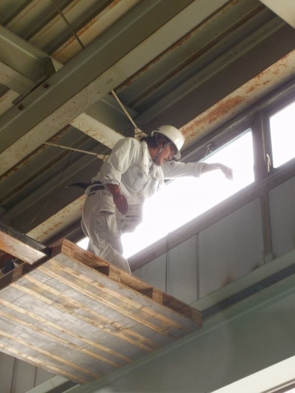 とりあえずは作業できるのだけど張りの鉄骨に頭ぶつけそうで