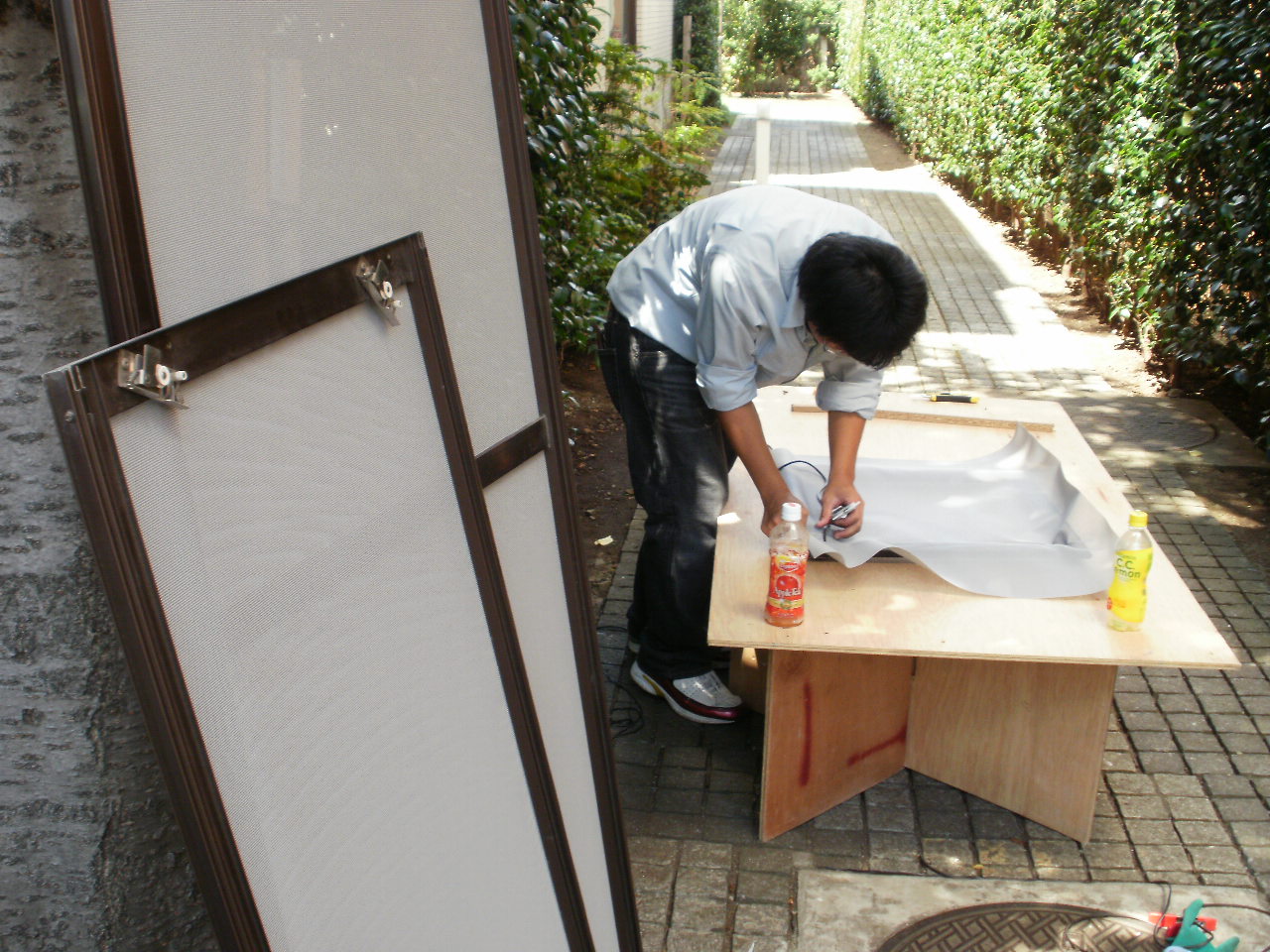 準備して、その場でカットしてサッシ等の枠に収めますが