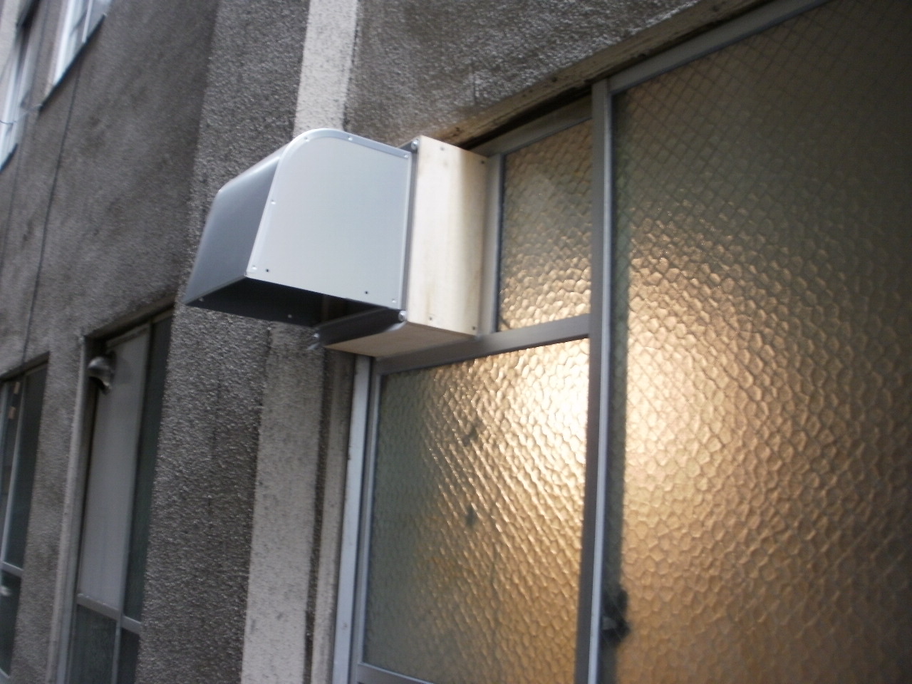 既存の縦型の換気扇を取り払い、窓枠の中に換気扇を付ける。